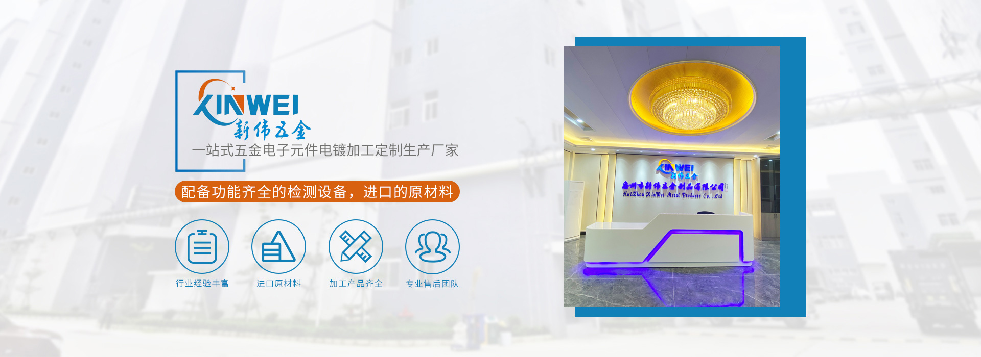 惠州市新偉五金制品有限公司(簡稱:新偉五金)坐落于中國廣東省惠州市,成立于2010年,是一家專業(yè)電鍍各種高品質功能性的環(huán)保五金電子元件供應商,公司已通過ISO9001:2015及IATF16949:2016質量體系認證??蛻糁辽?,品質至上,承蒙新老客戶的信賴,公司發(fā)展迅速,廠房車間面積10000平方米,現(xiàn)有員工200名,并擁有一批從事電鍍行業(yè)10年以上、經驗豐富的技術骨干,為客戶解決許多疑難問題,另有一支品質工程小組,專業(yè)檢測產品品質,杜絕不良品外流,深受客戶好評。